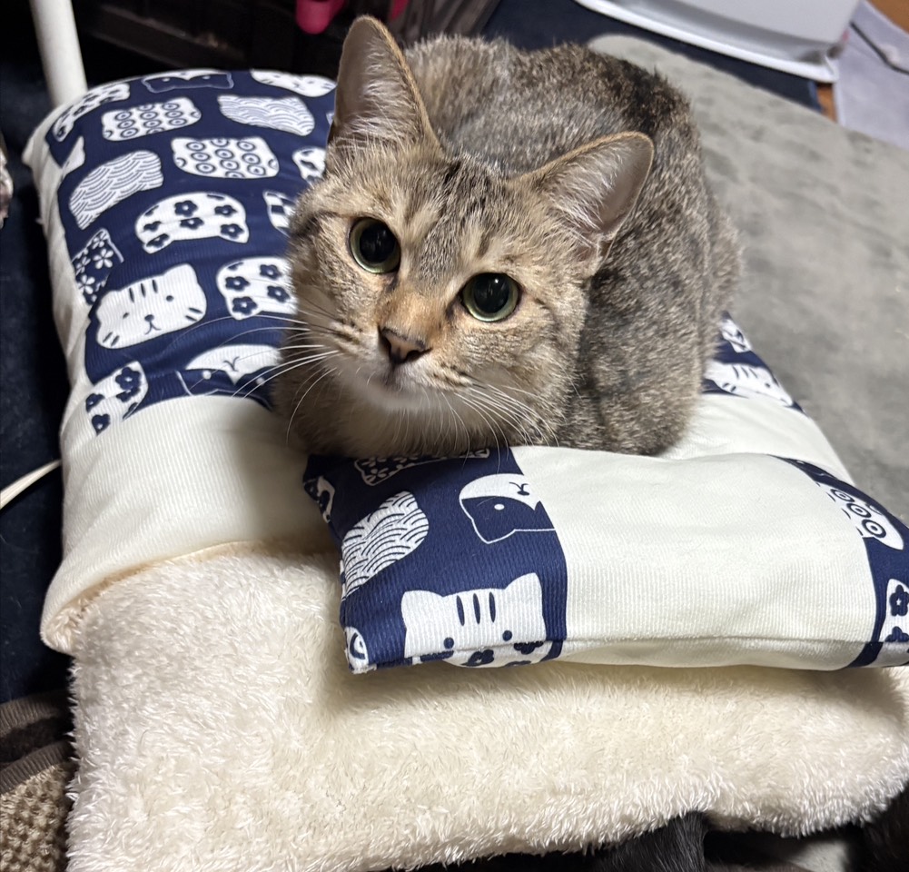 とても大人しい子です。おっとりしていて寝ることがすき。猫より人が好きなタイプです。